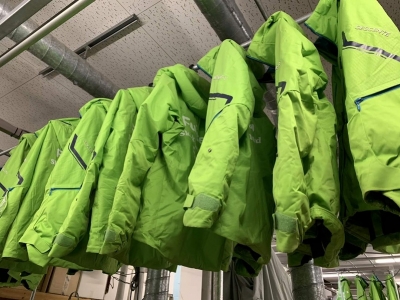 大量のスキーウェア、寝袋、ハッピ、ハチマキ、Tシャツ等、クリーニング承ります