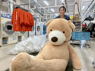 チャーター便対応の大きなぬいぐるみを綿詰め・クリーニング