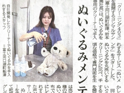 新サービス「ぬいメンテ」について山梨日日新聞に掲載して頂きました。