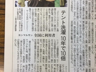 山梨日日新聞にテントクリーニング.comの記事が掲載されました