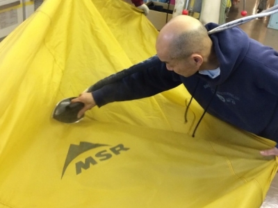 テントの加水分解によるベタつきと臭いを取り除きます。