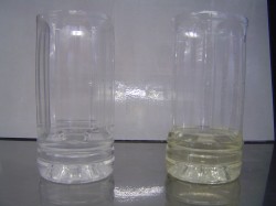 そんな時期403の汗抜き加工がおすすめ!403オリジナル加工液に背広などの衣類をつけ込むと汗汚れなどで液はにごり下の写真を見て頂ければよごれが一