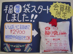 日ごろのご愛顧に感謝の気持ちを込めて毎年大人気の福袋を開催いたします。403のお客様をはじめ会員の方に、福がおとずれ、服もきれいにしていただいて、今年も良い年になるよう願っております。
