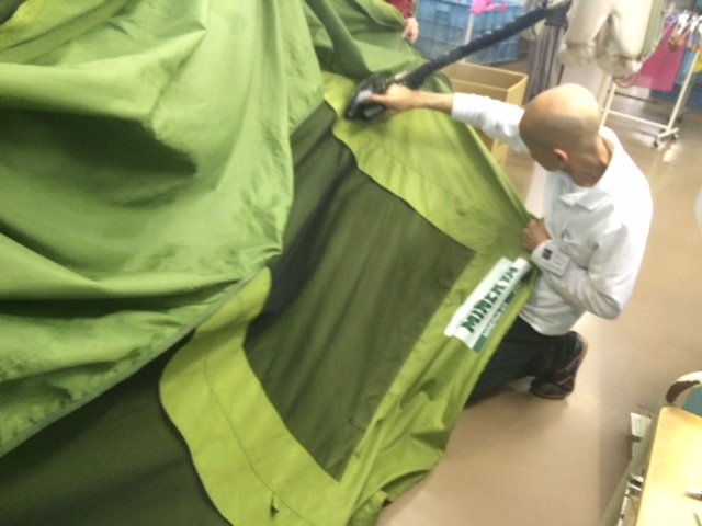 この前の土日でキャンプを楽しまれ、その後 わざわざ クリーニング403本店工場(河口湖)にテントを持ち込んでくださったお客様のお品物を本日、早朝に仕上げさせて頂きました。