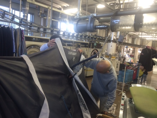 雨で濡れたノルディスクのカビ発生を防ぐため、到着後即時クリーニングしています。21