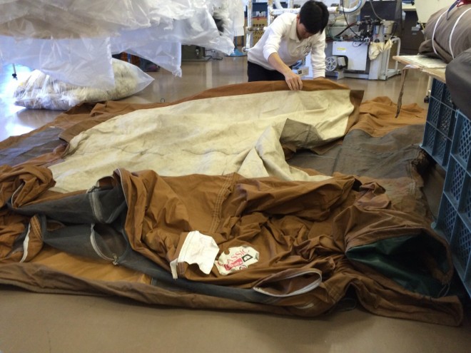 雨で濡れたノルディスクのカビ発生を防ぐため、到着後即時クリーニングしています。21