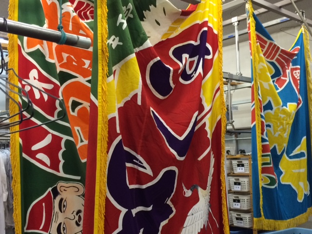 それで、この色鮮やかな大漁旗、洗濯が難しいんです。色が出てしまうということで結構なクリーニング店では取り扱わないはずです。