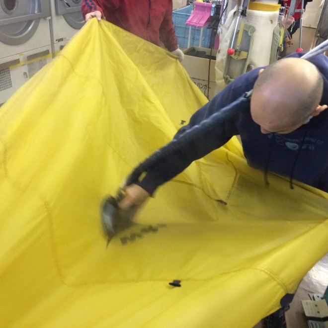 雨で濡れたノルディスクのカビ発生を防ぐため、到着後即時クリーニングしています。21