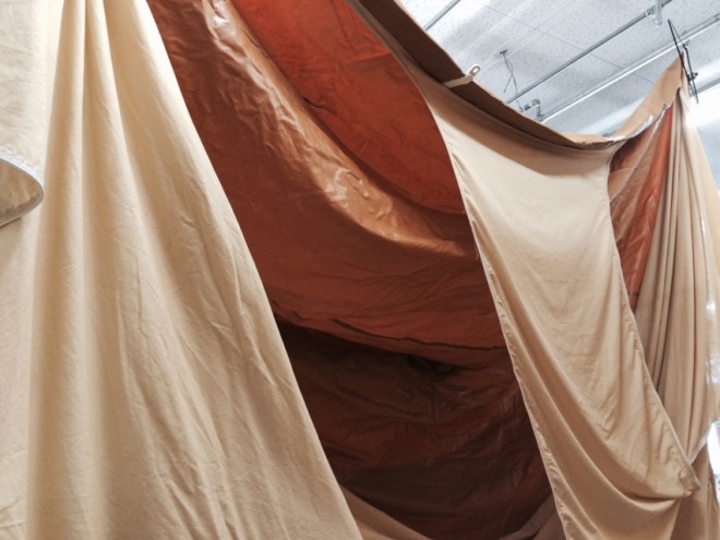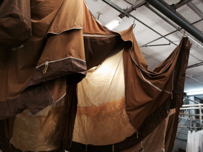 職人によるテント・タープのシワ伸ばし72