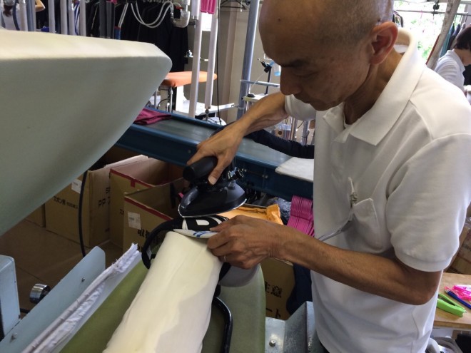 専用の帽子仕上げ機も使うのですが、細かい部分は職人が1点1点仕上げます。