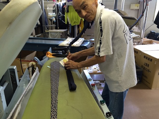 専用の型にネクタイを通して、仕上げさせて頂いておりますので、