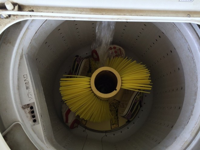 ブラシでごしごし、、、
