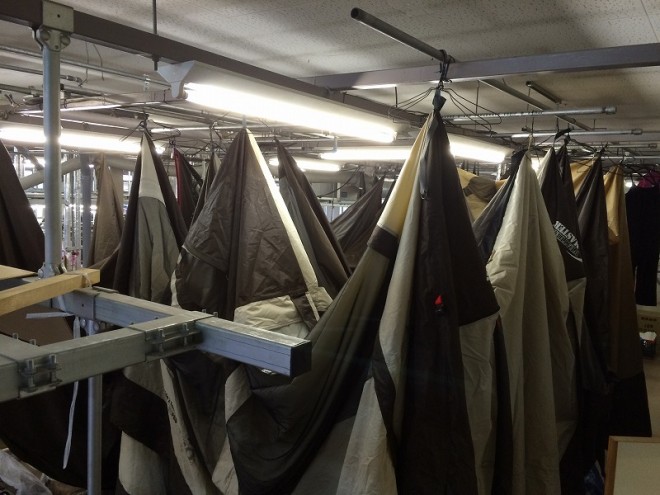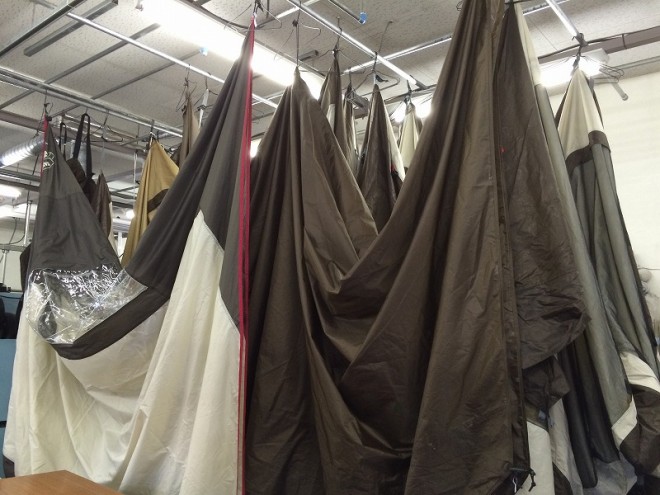 雨で濡れたノルディスクのカビ発生を防ぐため、到着後即時クリーニングしています。21