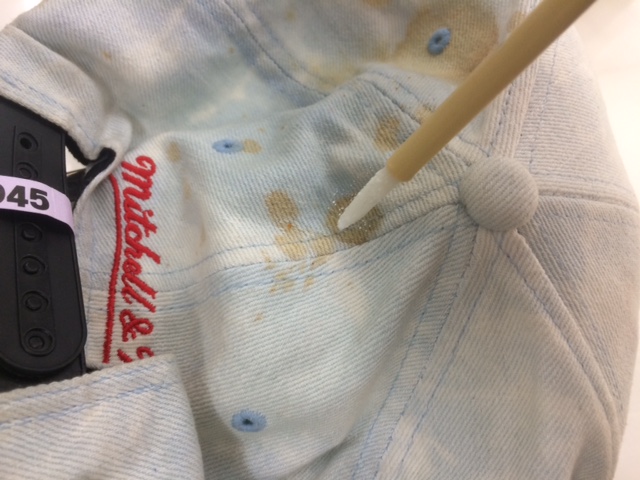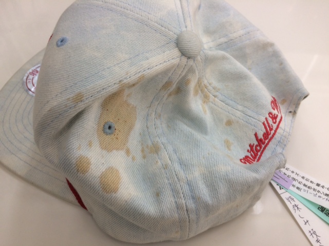 黄色の斑点(カビ) ハットのカビ落とし出来ます。162