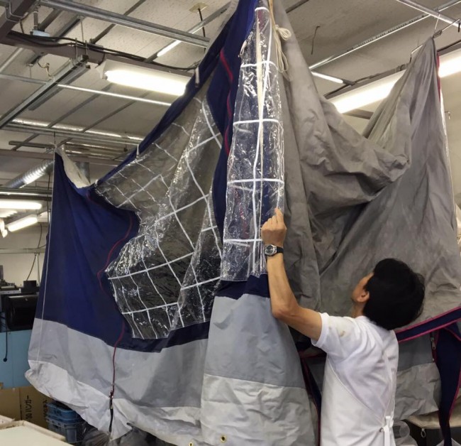 職人が状態を確認した上で、そのテントにとってベストな方法でクリーニングをさせて