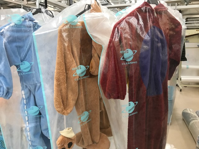ハロウィンで着た衣装や着ぐるみのクリーニングを行いました。