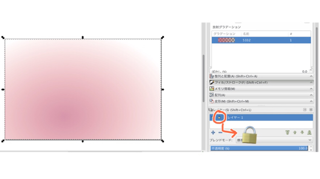 ※画像の「レイヤー1」はロックしていない状態。鍵マークをクリックで鍵が閉まります。