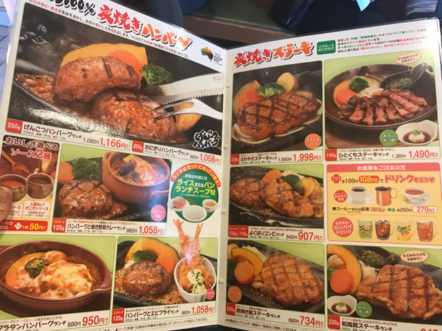 ハンバーグも種類がいくつもあって、ステーキなんかもあります!
