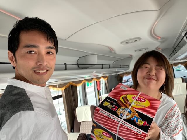 カラオケをしたり、表彰式をしたりバスの中も楽しい時間を過ごしました^^