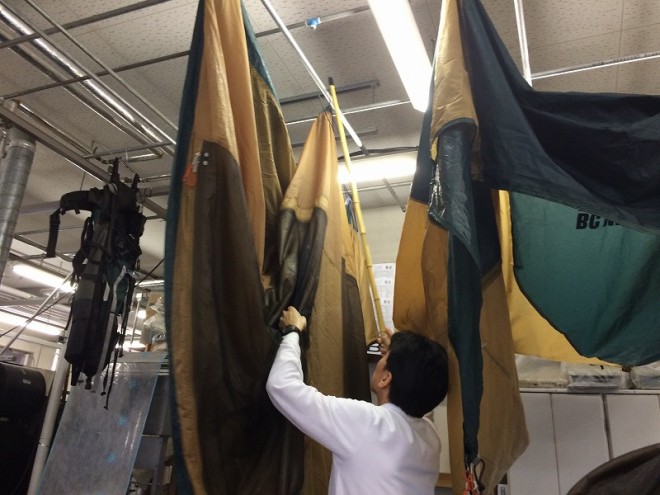 雨で濡れたノルディスクのカビ発生を防ぐため、到着後即時クリーニングしています。21
