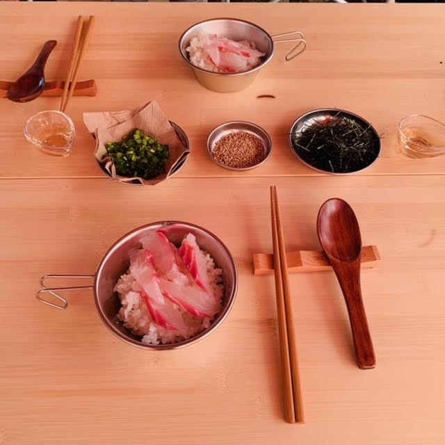 テント設営後は、簡単に鯛茶漬けでランチです。