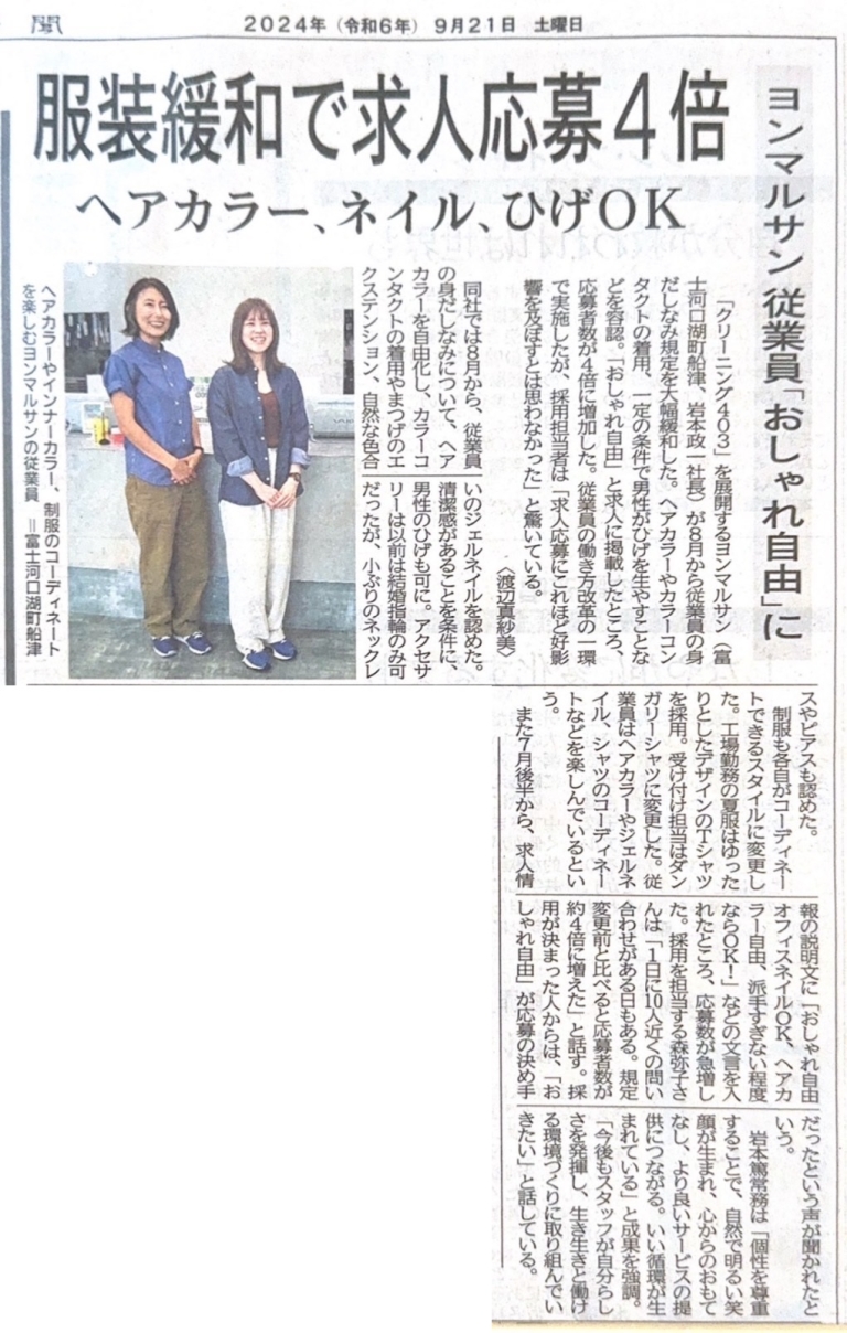 新型ワイシャツ仕上げ機導入が山梨日日新聞で紹介されました!12